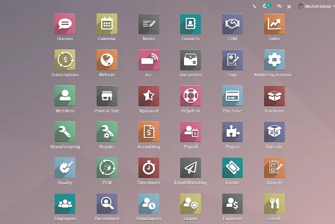 Berbagai modul Odoo yang dapat diimplementasikan dalam kategori di bawah ini (namun tidak terbatas pada):