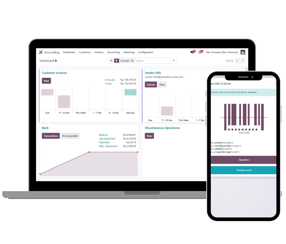 Kami menawarkan solusi ERP yang menyatu dengan sistem akuntansi untuk menciptakan alur kerja yang efisien dan terkoneksi.